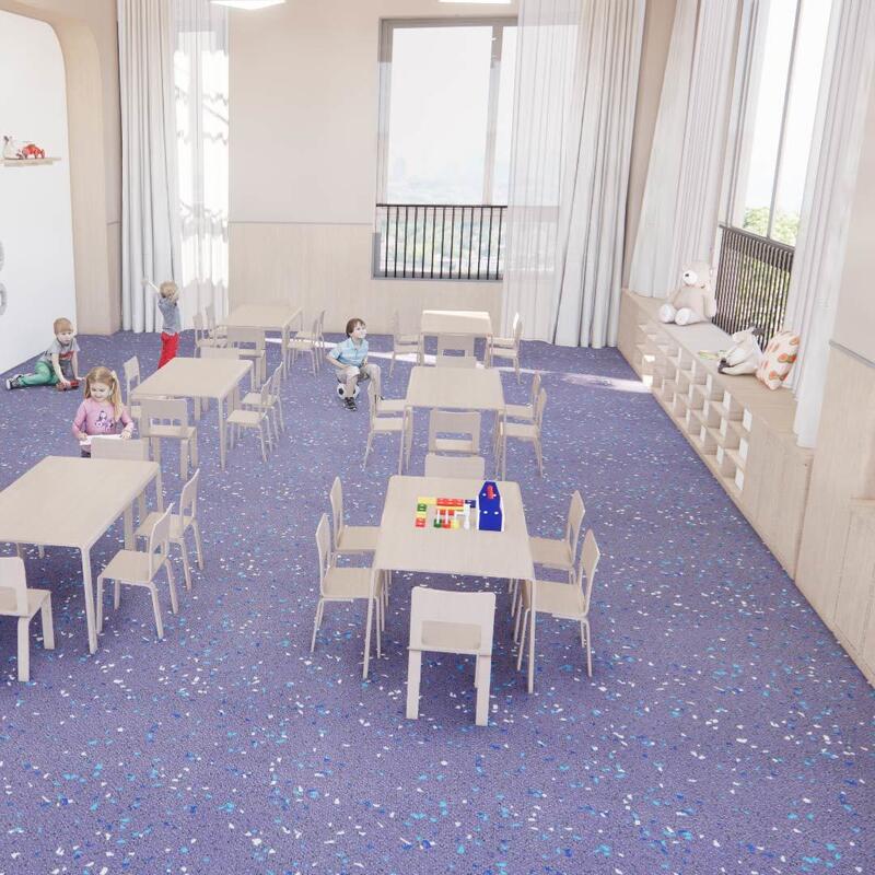 • 학교 복도: 소음 감소 + 어린이 안전 미끄럼 방지 디자인, 무독성 및 내구성;