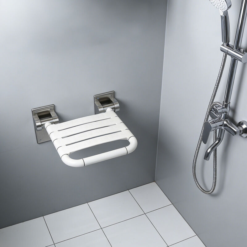 304 스테인리스 스틸 브래킷, 안 슬리프 ABS 좌석, 90 ° 접기 공간 절약, 안정성을 위해 벽에 장착. 노인 및 임신자를 위해 설계, 150kg의 부담을, 더 안전한 목욕.