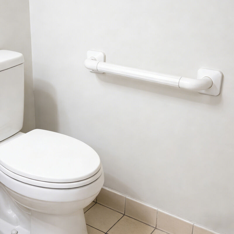 | White Nylon Wall Mounted Grab Bar - Non-slip, 150kg load capacity, waterproof. Ideal safety handrail for bathroom, toilet, shower, elderly, disabled, hospitals and nursing homes. |
